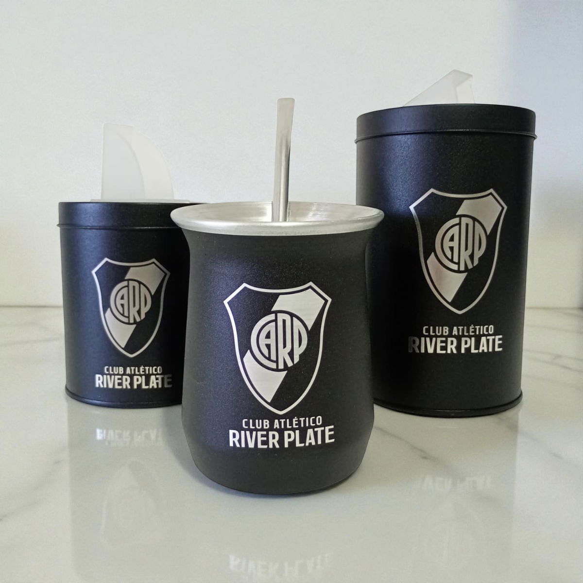 Mate de Aluminio c/bombilla + vertedores River Plate
