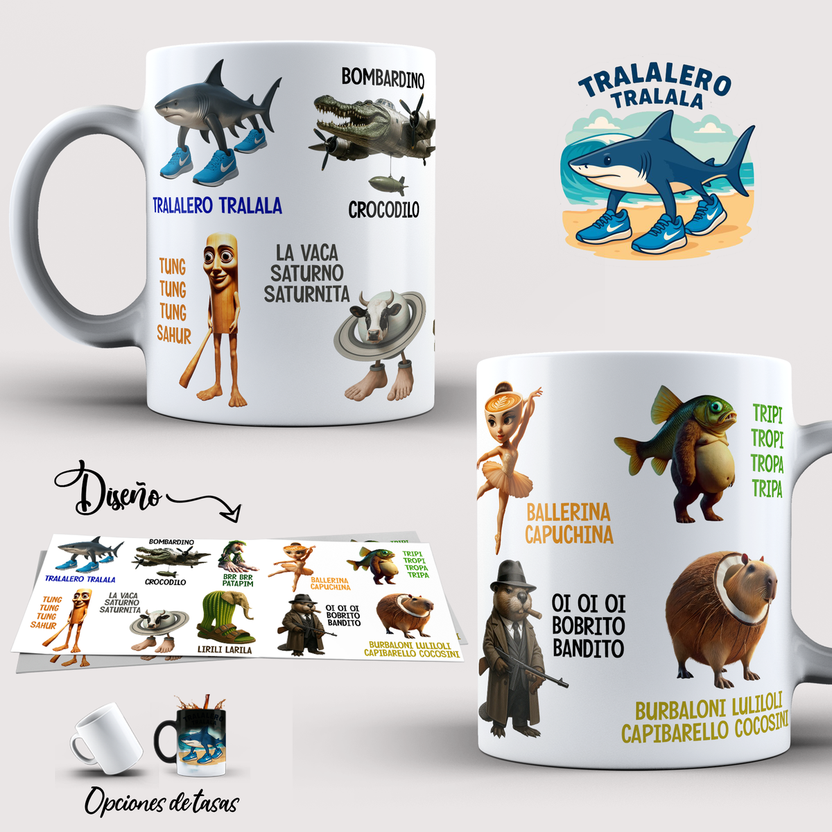Taza Viral Brainrot Italiano Tralalero Tralala y sus amigos