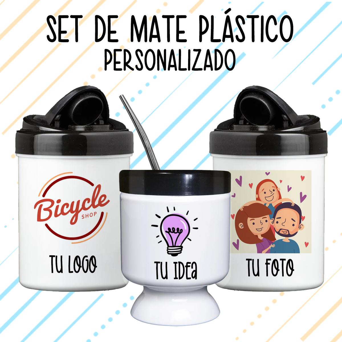 Mate con bombillas + Vertedores Plásticos Personalizados