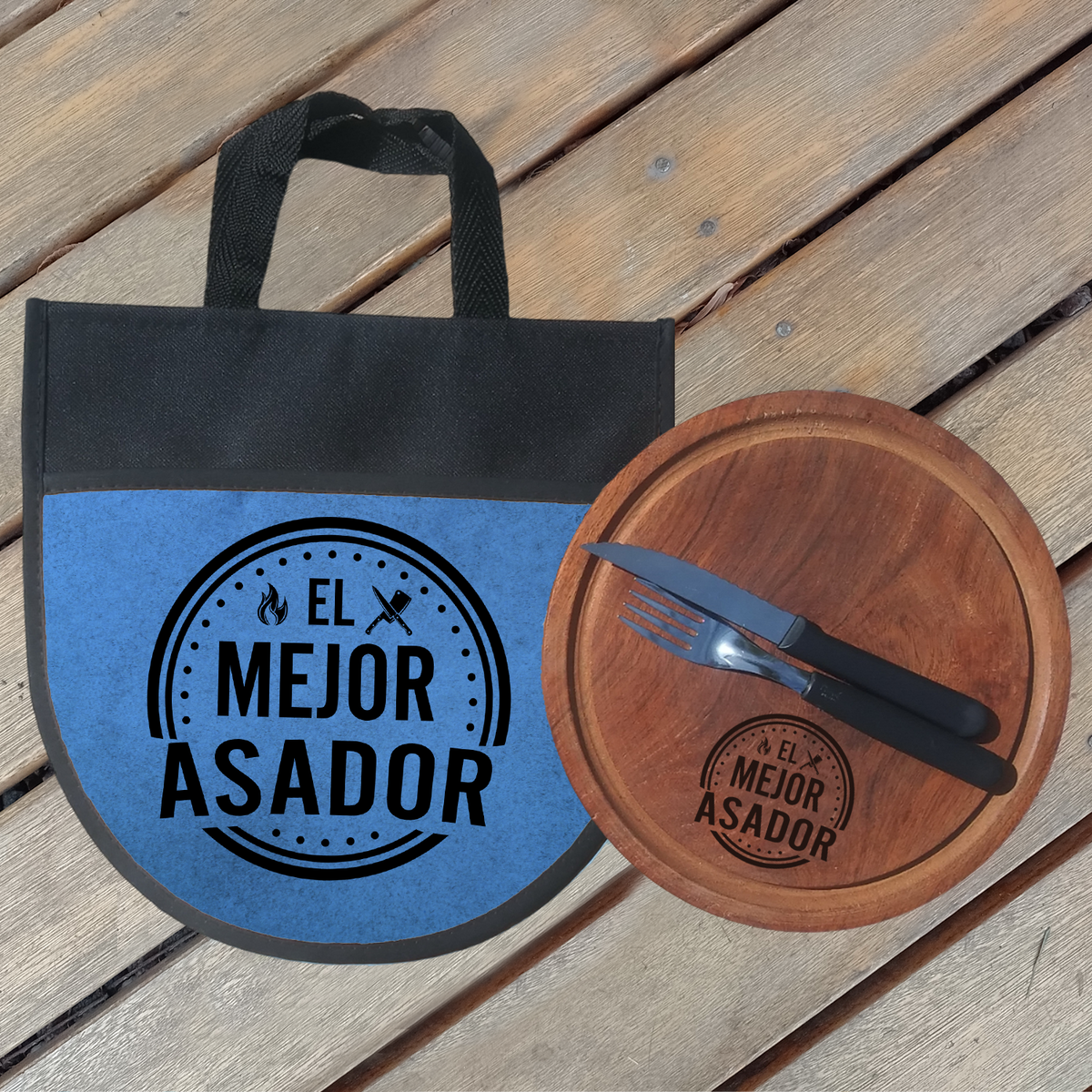 Combo 5 : Funda - Plato Algarrobo (con grabado laser) - Cubiertos
