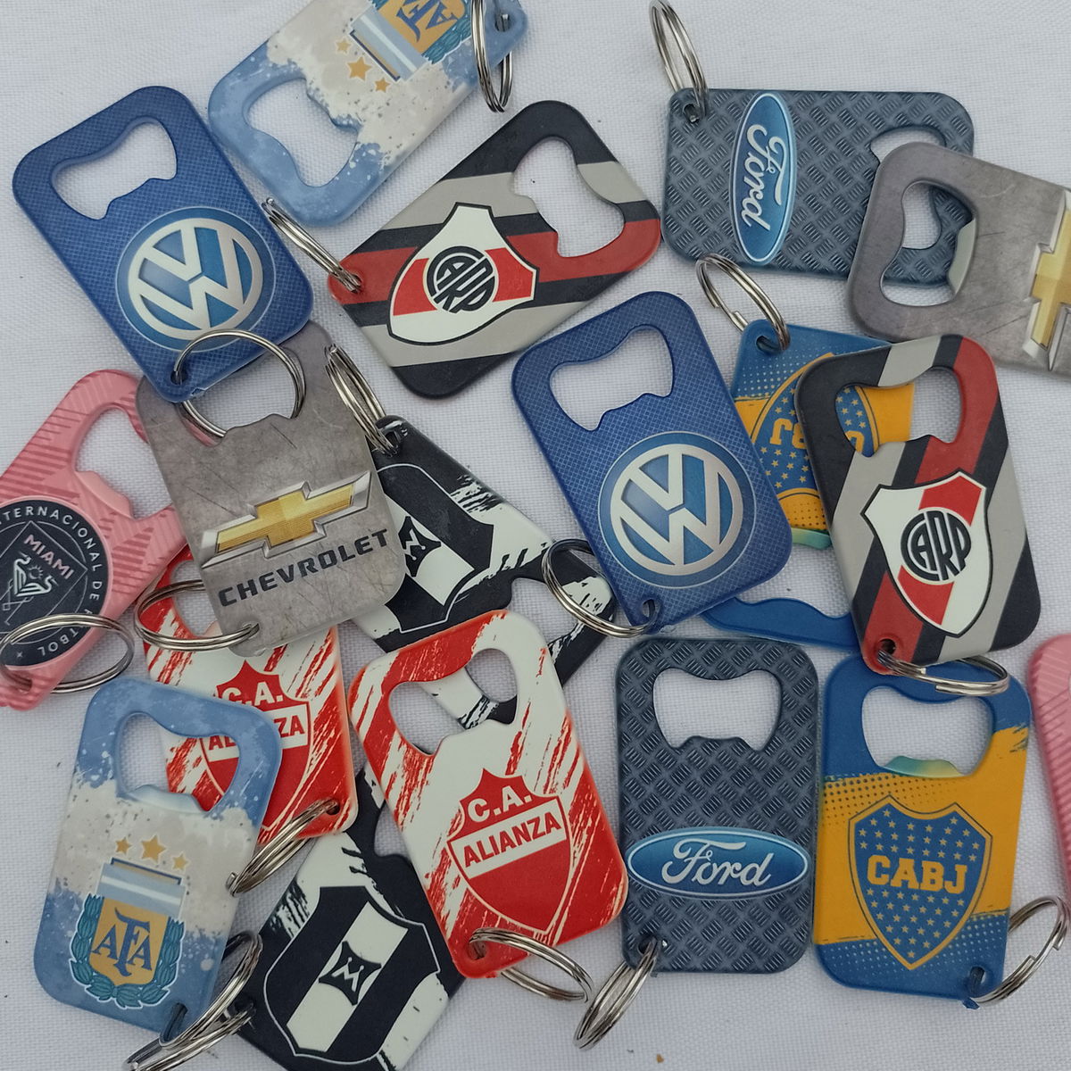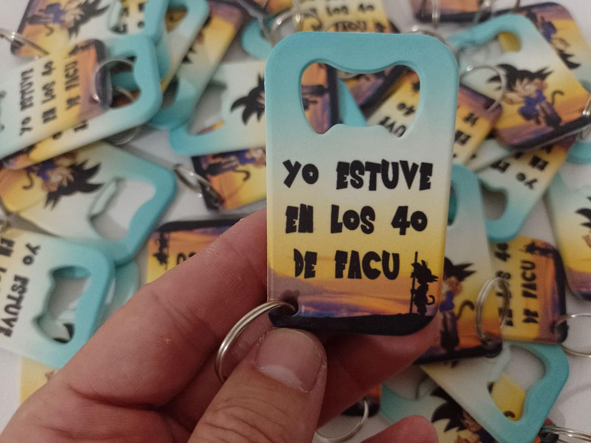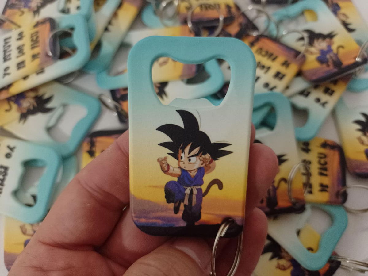 Llavero con forma de destapador plástico sublimado.