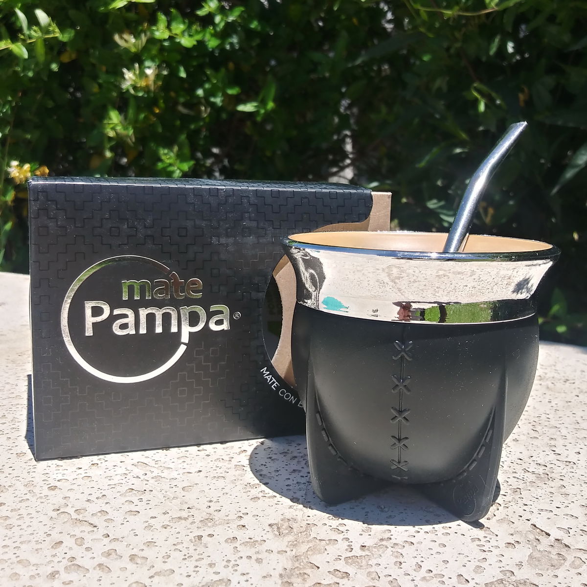 Mate Pampa Boca Abierta con bombilla. Negro
