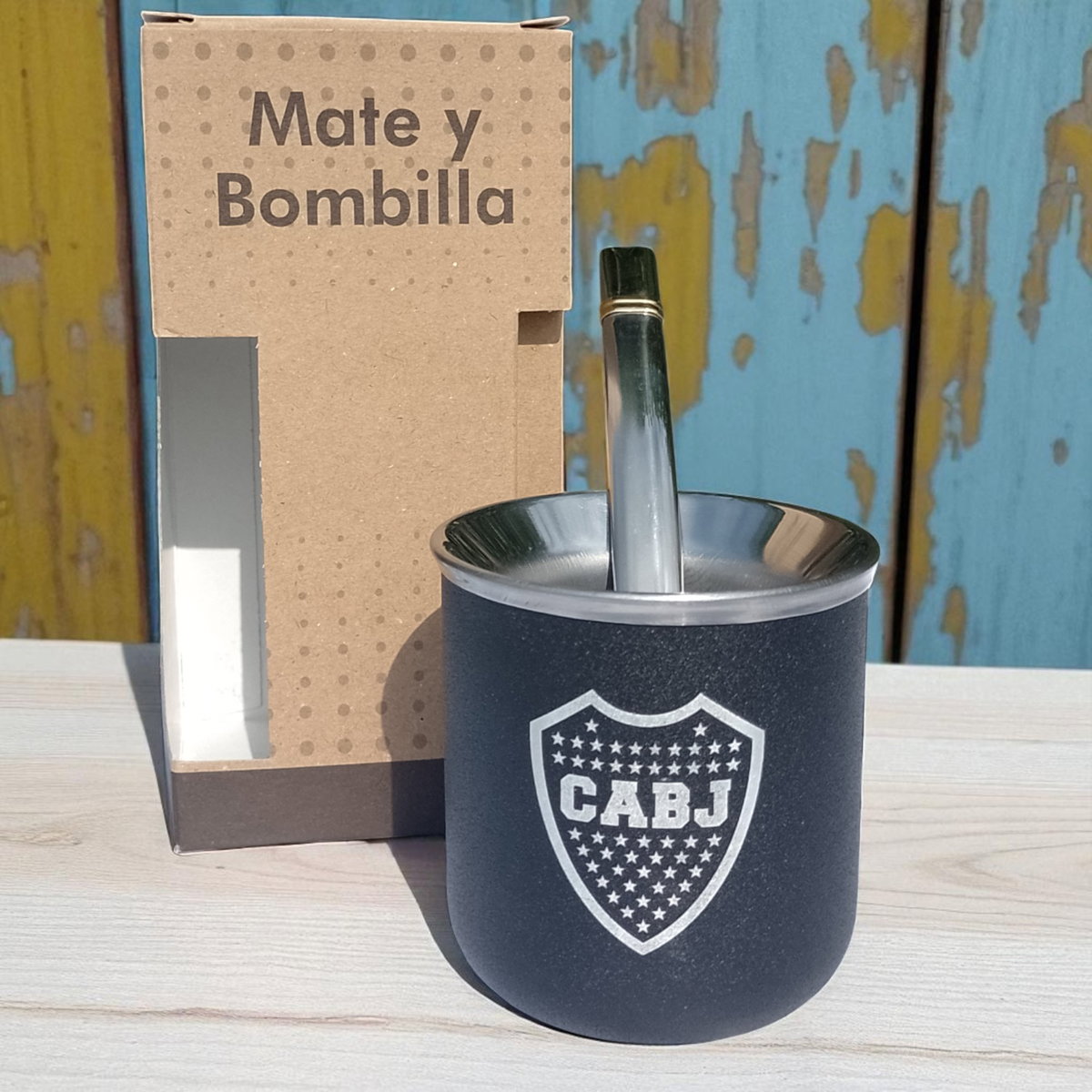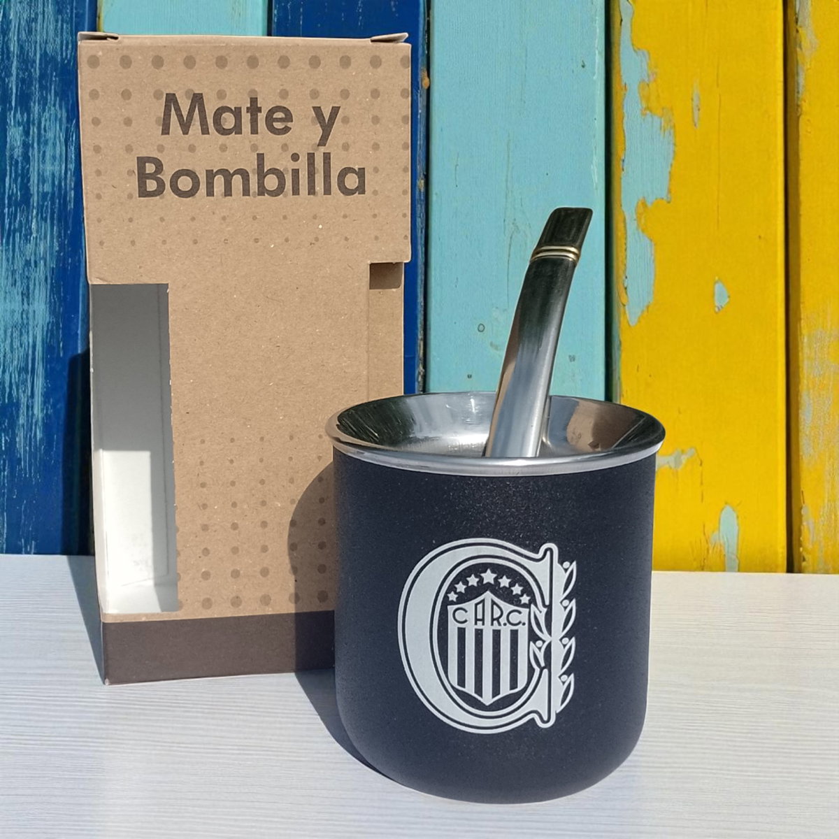 Mate de Acero Inoxidable Fútbol con bombilla .